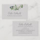 This modern olive branch grey business card is perfect for a small business owner, consultant, stylist and more! The rustic yet elegant design features simple watercolor botanical green leaves and black olives on a small branch with a classic mediterranean feel.