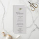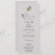 This modern olive branch grey wedding program is perfect for a boho wedding. The rustic yet elegant design features simple watercolor botanical green leaves and black olives on a small branch with a classic mediterranean feel. Include the name of the bride and groom, the wedding date and location, thank you message, order of service, bridal party and an optional "in loving memory" memorial.