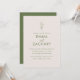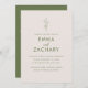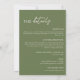 A minimalistic and modern olive green and grey all-in-one wedding invitation, designed with simple and script lettering, and a floral element. Customise with your wedding invitation info on the front, and wedding accommodation and reception info on the back.