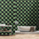 Modern Olive Green Black Gradient Chequered Wallpaper