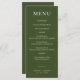 Modern Olive Green Elegant Wedding Menu with white script. Personalise it with your information. View the matching collection.
