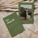 Modern Olive Green Elopement Wedding Reception Invitation. Customise this elegant and minimalistic wedding announcement/invitation card with bride and groom names, your wedding date, and a favourite wedding photo on the front, and add your elopement message and wedding reception party info to the back.
