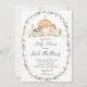 Invite your guest with our elegant and modern on the farm baby shower invitation features greenery garland and watercolor sweet baby farm animals. Personalise with your baby shower details in simple layout and elegant handwritten style font.