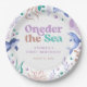 Modern Oneder the Sea Dolphin Retro First Birthday Paper Plate