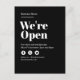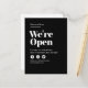 Modern Open For Business Take Out Delivery Black Announcement Postcard