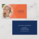 Modern business card featuring an orange layered geometric design on the front where you can also add your photo and a blue colour back side. This business card is ideal for various professions like interior designer, event planner, realtor, consultant, makeup artist, model, actor etc. Check out other business cards here: https://www.zazzle.com/rosewoodandcitrus/gifts?cg=196997542081207163&rf=238364477188679314