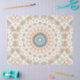 This modern mandala design features a lively blend of earthy orange, sage green, and deep teal, arranged in concentric layers of rhythmic shapes. The centre radiates outward with petal-like bursts that transition into playful loops, dots, and geometric forms, giving the composition both structure and flow. The alternating warm and cool tones create a sense of balance, while the repeating circular motifs bring movement and energy. Set against a crisp white background, the colours feel bright yet grounded, making the overall pattern both vibrant and soothing. A perfect choice for anyone drawn to geometric detail, organic symmetry, and bold, colourful expression.