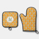 Modern Orange and White Leaf Pattern Monogram Oven Mitt & Pot Holder Set