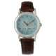 I like the illustrative watch with the lady on it. It is a great reminder that I am blessed and it has a very sturdy leather band. The colors are true and vibrant. Love the color of the Leather also. Very nice.
