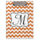 Modern Orange Glitter Chevron Zig Zag Stripe Fabric Print Pattern Monogram Initial Clip Board Personalised