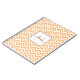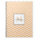 Personalised spiral notebook features a pastel orange chevron pattern with custom name in black handwriting font and monogram in matching orange shade in white square frame.