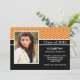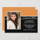 Start your event off right with our modern class of 2012 trendy orange & white zig zag chevron print set on a black background photo graduation party invitation. Perfect stylish graduation party invitation for a high school graduation party or college graduation party. Easy to personalise - Just fill in your information add your photo you're all set to go. Visit our shop for a large assortment of 2012 graduation invitations! Available in our shop in a large variety of school colours. Custom orders are always welcomed!
