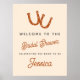 A modern Boho Cowgirl Bridal Shower welcome poster for a bridal shower or wedding shower, with a retro inspired script font in burnt orange and cream white beige. All colours of this design can be changed - simply access the design tool to make the changes you'd like. This is a double-sided board with a welcome message on the front and a Thank You on the back. Simply turn the sign around before your guests leave the event.