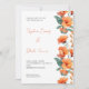 With its unique and stylish design, this wedding invitation is perfect for couples who want to make a statement with their wedding stationery. The combination of the elegant black font, the playful orange script font, and the charming floral design create a beautiful and cohesive look that is sure to impress. Your guests will be excited to receive such a lovely invitation and will be counting down the days until your special day.