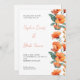 This white wedding invitation is perfect for couples who are planning a wedding in the spring or fall, or for those who have chosen orange or green as their main wedding colours. The bright and crisp white background provides a classic and timeless feel to the invitation, while the vibrant orange and green floral design adds a pop of colour and a touch of whimsy.