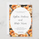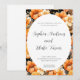 Introducing our stunning orange garden bordered wedding invitation! This invitation is perfect for couples who want to set the tone for their fall wedding or showcase their love for the colour orange. The invitation features a large white oval in the centre which holds all the important details of your special day. The text is elegantly displayed in a simple black font, except for the couple's names which are beautifully scripted in an elaborate font, adding a touch of sophistication to the design.