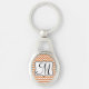 Modern Orange Glitter Chevron Zig Zag Stripe Monogram Initial Key Chain