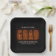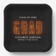 Modern graduation paper plates featuring "Grad" displayed in orange neon lettering with a black background (or color of your choice). Personalize the neon graduation plates with the graduate's name, school name, and graduation year. The personalized graduation paper plates are perfect to use for both high school and college graduation parties!