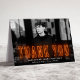 Modern graduation thank you card displaying the graduate's horizontal photo with "Thank You" in orange neon lettering. Personalize the front of the folded graduation thank you card by adding the graduate's name, school name, and graduation year. The inside of the photo graduation thank you card features your typed custom message or leave blank to handwrite your own.