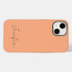Protect your new phone from scratches with this Modern Orange Pastel Chic Script Personalised Case-Mate iPhone 14 Case. It is simple and elegant designed with name in grey trendy hand lettered script font on lower centre. The background is customisable light orange peach.