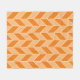 This modern fleece blanket features a trendy geometric herringbone pattern in orange, peach, and white.