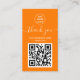 Modern Orange QR code Order thank you Business Card