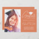 Send your family and friends a unique personalised photo college graduation card to wow them. This template design features your custom photo on the left and to the right a white grad cap sitting on the word "Graduate" written in a hand lettered white font. Personalise your class/year, name, degree and other ceremony details on a classic orange background. Designed by Susan Coffey.