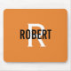 Modern design with orange background, a modern white monogram with black name. Personalise with your name and initial.