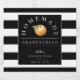 Rustic watercolor orange and leaves, modern orangecello beverage label. Labels feature, chic black and white stripe pattern background.
