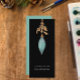Personalise this card with your own custom text. You can add your name and greeting for a unique Christmas holiday card. I hand painted this simple turquoise teal Christmas bauble. I added the black background with white elegant script. The golden tan botanical leaves suspend a holiday ornament. The back is a solid beautiful aqua turquoise colour. I hope you enjoy this lovingly made card. This thin tall card could also work well as a book mark.