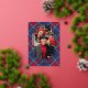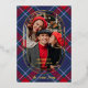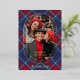 Modern Oval Blue Red Christmas Tartan Foto Family Metallic Foil Holiday Card with Envelope.