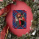 Modern Oval Blue Red Christmas Tartan Foto Family