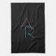 Modern Overlapping Initials | Pink Turquoise Black Tea Towel