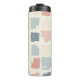Squares of teal and peachy tans create a painted look on this very modern and stylish thermal tumbler.