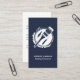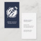 A simple, modern business card with a navy blue background on the front with a paintbrush resting on a paint lid in white. The reverse of the card has a plain white background and you can easily customize the navy blue and dark gray typography with your name, job title and contact details. A simple, minimalist business card perfect for the painting and decorating industry.
