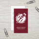 A simple, modern business card with a burgundy red background on the front with a white paintbrush resting on a paint lid. The reverse of the card has a plain white background and you can easily customize the red and dark gray typography with your name, job title and contact details. A simple, minimalist business card perfect for the painting and decorating industry.