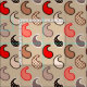 Fabric in a minimalist, modern paisley pattern, outlined accented with dots - shades of stone grey / grey, deep red, coral, and cocoa brown, on a medium beige background