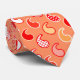 Tie in a minimalist, modern paisley pattern, outlined accented with dots - shades of mandarin orange, pastel orange, coral red, and white on a soft coral orange background