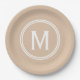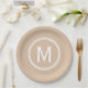 Modern Pale Peach Custom Round Framed Monogram Paper Plate