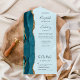 The left-hand edge of this elegant modern all-in-one wedding invitation and RSVP features a teal blue watercolor agate border trimmed with faux gold glitter. The customisable text combines dark teal handwriting, copperplate and italic fonts on a pale teal background. The return address appears on the outside flap and the reverse side of the detachable RSVP card.