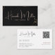 A stylish and modern business card design ideal for event planners and creative professionals. The front features a matte black background with subtle palm leaves, highlighted by blush script lettering and fine gold geometric accents. The reverse side offers a clean white layout with bold black contact details, soft blush social icons, and a convenient QR code for instant connection. Professional, customisable, and eye-catching, perfect for making a lasting impression.