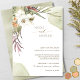 Delight friends and family with this elegant wedding invitation with exquisite corner watercolor floral with palm leaves, grasses and flowers in a beautiful earth tone combination with olive green, orange, terracotta, mauve lavender and cream hues. Back of card in attractive olive green watercolor texture with elegant cream tone frame in centre with couples names (which can be removed by selecting customise further if you prefer design without it). Part of our "Palm Leaves Floral Green Collection" with a variety of coordinating products available.
