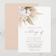 A modern wedding invitation featuring a watercolor bouquet of pampas grass and flowers and calligraphy font for "wedding of".