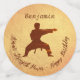 For boy party, modern karate silhouette, strength power of martial arts with personalised name on a golden and gradient colours background. Just for a Happy Karate Birthday!