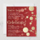 Design your party invitations with this Red customisable invites with design of Gold bubbles floating in a celebration energy on red background. Passionate modern design pattern for an All occasions party invitation cards, suitable for birthdays or any other special occassion or event.