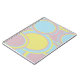 Modern abstract painting of pastel-colored circles of pink, blue, and yellow.