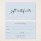 Modern pastel blue business gift certificate