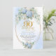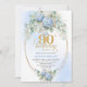 Modern Pastel Blue Floral Gold 90th Birthday Card