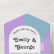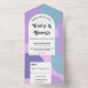 Modern Pastel Blue Purple Retro Abstract Wedding All In One Invitation
