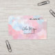 Elevate your beauty brand with this chic, modern business card. Featuring a soft pastel mosaic geometric pattern in shades of blush pink, peach, and sky blue, it offers a sophisticated backdrop for beauty professionals. The front displays your name in an elegant script, while the back includes a QR code to link clients directly to your portfolio or booking site.
